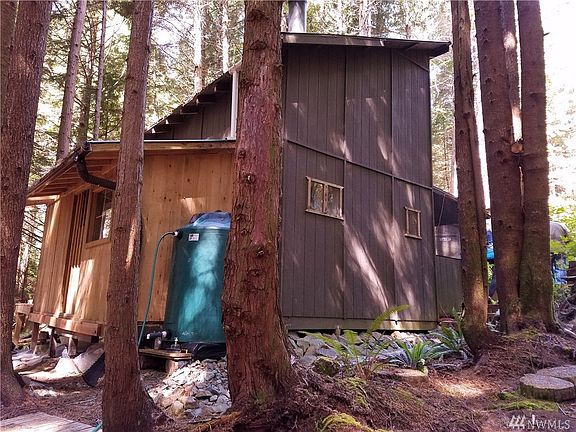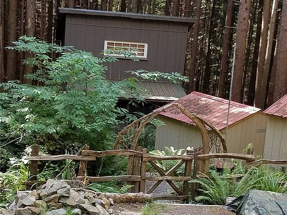 Wilderness off Grid Cabin,The Ocean and River are just steps away. This little Cabin has a wonderful setting in the Forest and is ready for living. It features a loft for sleeping,a deck on one side for outdoor viewing and activities. A large water tank catches rain water and a wood stove to keep you warm. Bathroom area for composting toilet and shower stall for easy showering. Screened in Porch on the Mountain side and a partial split rail fence around the perimeter. Possible Owner Financing.