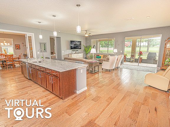 ABSOLUTELY STUNNING!! Welcome to this gorgeous, like-new home with 3 bedrooms, 3 baths plus flex rooms, and 2,639 square feet in the 55+ active adult community of On Top of the World in Ocala! Built in 2016 and shows like a model home! Offers all the amenities you're looking for with stunning views of the golf course and no rear neighbors! The beautiful decor enhances many upgrades including expanded exterior paver bricks, 10 ft. ceilings, a gourmet kitchen, 2 primary suites, and engineered hardwood flooring throughout. Open floorplan features 2 flex rooms and a den that is currently being used as a formal dining room. Gourmet kitchen has been upgraded from top to bottom with a 13 ft. island with gorgeous Cambria quartz countertops, 42" upper cabinets, tiled backsplash, s/s appliances, instant hot water, large s/s sink, built-in wall oven and microwave, and overlooks the living areas, creating the perfect setup for entertaining! Main primary suite offers a designer closet with both en-suites featuring roman showers and upgraded quartz vanities. Ample storage throughout, including separate laundry room and an oversized 2-car garage w/ hanging storage and enough space for 2 cars and a golf cart. HOA is $360/month and covers a long list of resort style amenities, including trash, recycling, home lawn care, guarded gated entries, 2 fitness centers, 2 group exercise rooms, 3 swimming pools, tennis courts, bocce ball courts, archery, shuffle board, hobby shop, craft rooms, library, ballroom, racquetball, pickle ball, billiard room, meeting rooms, card rooms, putt-putt golf, softball field, community garden plots, 3 dog parks, horseshoes , outdoor pavilion, playground, walking trails, 3 golf courses...AND MORE!!! Don't miss the chance to live the good life in this AMAZING home!