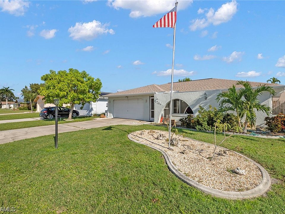BRAND NEW ROOF June 2023, Freshly painted main area of interior, three bedroom 2 bath Lovingly maintained home buy owner of 28 years is looking for its new owner! The kitchen has granite countertops and wood cabinets that were updated in 2019, an additional room at the back of the home gives an excellent area for flex space! Could it be a man cave? or art studio? options galore with the 14x20 space! Positioned perfectly home offers plenty of natural light, It has both a living room and a family room, a split floor plan, a fenced yard, and mature fruit trees! Talk about a great location! The sought-after South Pointe South community has a clubhouse and pool on the community lake, across the street from a public park, walking sidewalks, close to shopping, and restaurants, not far from beaches, and moments to the bridge into Cape Coral. Low HOA fees. This home should not be missed, comes view!