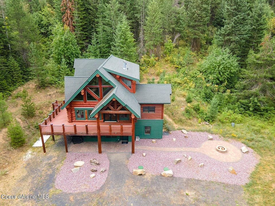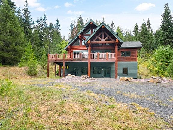 Primary Home? Weekend Retreat? Just 10 minutes to I-90. This modern log home has room to relax and play. Unique Winter harvested spruce logs from Canada and finished interior make a light and bright atmosphere. Oversized master bedroom, walk in closet and ensuite with walk out for your personal retreat. The pool table and wet bar are fun for the entertainer. Your guests or family can enjoy private bedroom(s) and bath on the first or 3rd floor. Relax in the Wet Steam Sauna with rinse off shower. Need to get some work done, enjoy the cozy nook in the loft with a built in desk, book shelf and reading area. You will find a sunny or shady spot to take in the view on the over 1000' deck and patio. Beautiful outdoor firepit for evening smore's. Over 37 acres to hike and enjoy the wildlife like moose, deer, bunnies and timberland. Remember to follow the road up to the potential second home site and take in the view of the city lights
