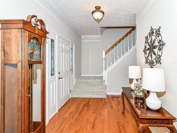 Wonderful 4bdrm 2 1/2 bath w/full basement & 2 1/2 car garage in fabulous Covington Estate. Beautiful hardwood floors in entry, kitchen & family room. Nicely updated kitchen w/all stainless steel appliances & family room w/beautiful custom built-ins and gas fireplace. All first floor wood blinds are custom. Large owners suite w/vaulted ceilings & updated bath. All bdrms have updated ceiling fans w/neutral carpeting. This large backyard is an oasis! Screened 3 season porch & deck surrounded by wooded lot.The creek runs thru the backyard with a sitting area surrounded by 3 more trees. Easy access to shopping & HWY69. Incredible neighborhood community amenities include updated pool, playground, tennis/pickle ball courts & Bball courts.