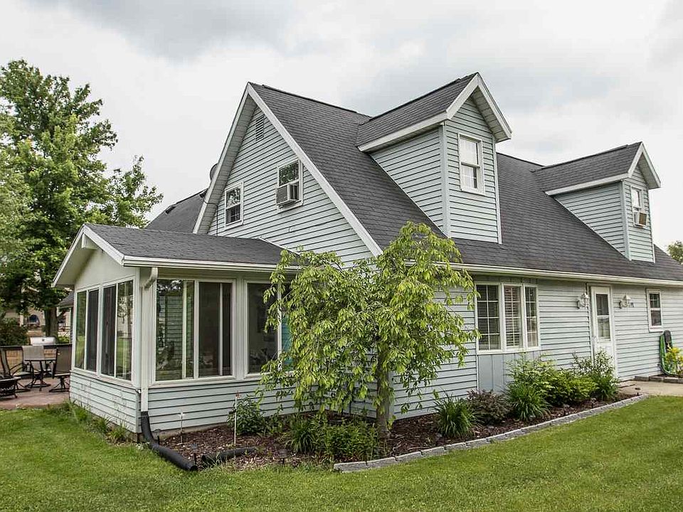 Here's your chance to LIVE at WAWASEE! Open concept cape offers a generous living area and kitchen, three large bedrooms, 1 1/2 baths, home office space, a three season room and a second lot! WAIT, THERE'S MORE! YOUR DEEDED PIER is approximately 200 feet from your front door and across the road is your PRIVATE BOAT LAUNCH. All 3 bedrooms are large, one with built in wall beds! The large patio rounds out this property making it perfect for entertaining, relaxing and fun! This great buy also has a large two car attached garage and shed for additional storage. TWO LOTS!