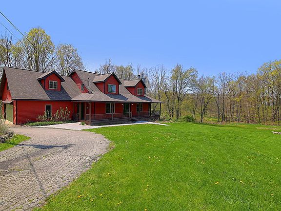 Impressive 3+ bedroom home offers nearly 4000 sqft of peaceful living. Set back off a private drive on 2.49 acres, you'll love the secluded country feel in a neighborhood setting. Covered wrap-around porch welcomes you to the open concept 2-story great room w/ fieldstone fireplace & soaring cedar tongue & groove ceiling open to expansive 2nd floor loft area. Updated master suite w/ laminate flooring & fully renovated bath w/ walk-in tile shower; kitchen w/ gorgeous quartz counters, tile backspla sh & stainless appliances; updated MF bath; stained cedar siding & decking & new roof in 2011. Potential for additional upstairs bedrooms should you desire in the 434 sqft bonus room and/or the expansive loft area. Brand new stand alone garage/workshop! Be the first to see it and make it yours!