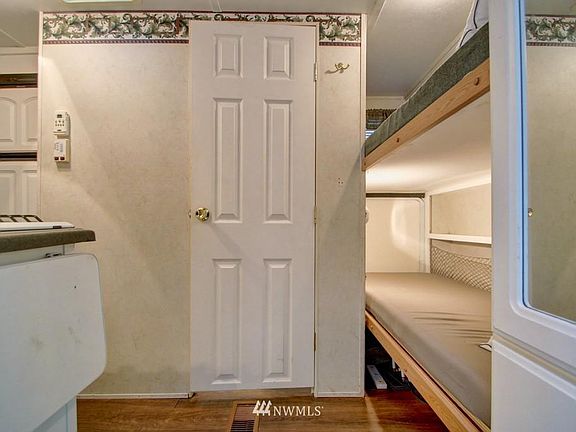 This bright newer trailer sits on a lot next to a greenspace and boasts a large covered deck, a shed for additional storage, and a large gazebo with two lofts and a wood burning stove! Inside the trailer includes a built-in bunk bed and a queen-sized bed, both with privacy curtains. The property is partially fenced and comfortably-situated for stays year-round. The layout of the property is designed for maximum privacy. The Glen has all the amenities you could want, including 2 pools, hot tub, tennis court, library, laundry mat, 2 clubhouse, 24 hr security, gated entry, & play areas.
