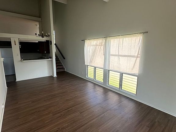 This split-level townhome has high ceilings in the kitchen and living area, features a partially enclosed deck with storage closet at entry area, and an open lanai. 2 assigned parking stalls right in front of the unit. Living room area has brand new vinyl plank flooring, and there are new appliances in the kitchen area. Convenient location on lower Kaahumanu Street with nearby freeway access to Town or Ewa. It is also minutes away from the Waimalu Plaza and Times Center, with restaurants, grocery and hardware stores. At tenant option, access to Newtown Recreation Center, which has a swimming pool, gym, and resident community events. Water/sewer is included. Renter's insurance is required. No Smoking. No Pets. There is a $30 non-refundable application fee per adult occupant.