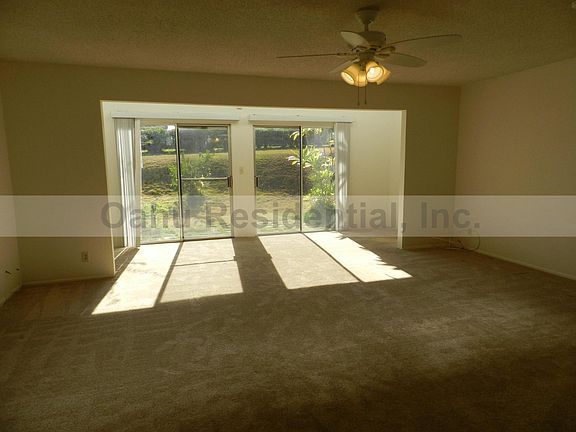 Recently renovated with new carpet/padding/sheet vinyl and new interior painting throughout. New cabinet drawers and doors; new kitchen and bath countertops and sink fixtures. New light fixtures. Great square footage. Comfortable 3bed/2.5bath split level end unit with expanded living/dining room (228 sq.ft.) and enclosed entry (150 sq.ft.) with lots of storage closets. Spacious master bedroom (221 sq.ft) with adjacent study (104 sq.ft) Two-car garage with auto garage door opener and remotes. Tenant is responsible for maintaining garage floor free of car oil/grease. Appliances include range, refrigerator, new range hood, new dishwasher, new disposal, full size washer and dryer. One ceiling fan in living/dining area. Monthly rent includes water/sewer. Security deposit $2,450. Initial one year lease. No pets, no water beds, no smoking of any kind including but not limited to tobacco and e-cigarettes in rental, enclosed lanai, surrounding common area, garage and as prohibited by the complex. Subleasing and/or use as transient accommodation is strictly prohibited. Easy access to H-1, Moanalua and Kamehameha Hwys to Pearl Harbor/Hickam, Camp Smith, Kaiser Permanente Moanalua, Honolulu International Airport and connections to H-2 (Mililani, Schofield/Wheeler) and H-3 (Kailua/Kaneohe). Privileges to Newtown Community Association Recreation Center. Application fee $20 per adult for credit report/processing. This rental is offered by Oahu Residential, Inc (RB-19201) Rent includes water/sewer; 2 car garage. No smoking of any kind, no pets, no waterbeds. 1 year initial lease. No subleasing or use as transient accommodation.