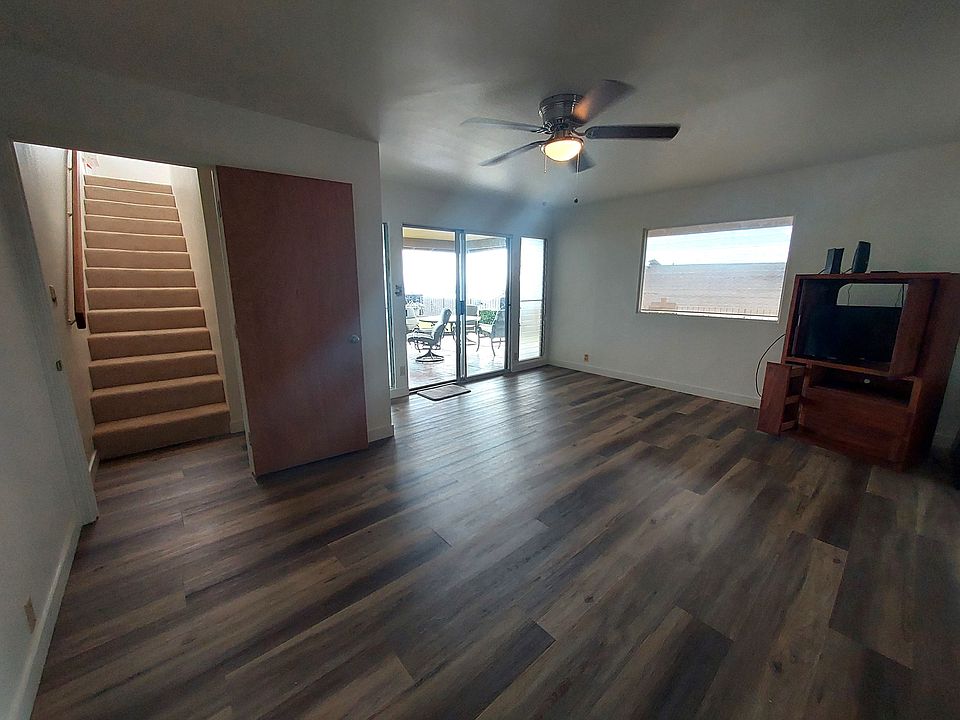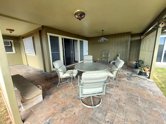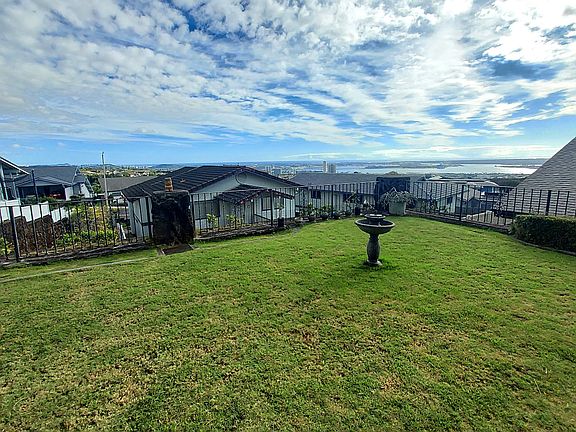 Large upstairs bedroom with updated private bathroom and panoramic views, in shared 4BR home in Newtown Estates. This large 1br has its own entry door and access from the home, 1 stall in garage, built in shelves and shared living area, kitchen, new vinyl flooring, large yard and patio. There is lots of storage and street parking. Bring your roommates or extended family and enjoy this quiet neighborhood and beautiful sunset views and Pearl Harbor. Internet and yard service included. Use of small appliances and some furniture, coffee maker, microwave, toaster, side tables, lounge chairs, etc. Sorry no smoking of any kind in the house or around the grounds and renter's insurance required. Pet friendly up to one pet under 30 lbs with pet deposit. Water/Sewer and electric will be billed per total number of people in the house. 6-month lease to start, total bedrooms in the house is 4, downstairs bedroom suite has an extension and private bathroom, lanai door to patio, walk in closet, and the 2 smaller bedrooms downstairs share a bathroom. This is only for the upstairs bedroom but whole house is advertised for rent for $6500/mo. 6 mos lease to start, renter's insurance required, electricity, water & sewer will be divided by total number of occupants and charged to tenant account each month. Basic internet and yard service is included. Downstairs large bedroom and upstairs large bedroom will have 1 use of one side of the garage
