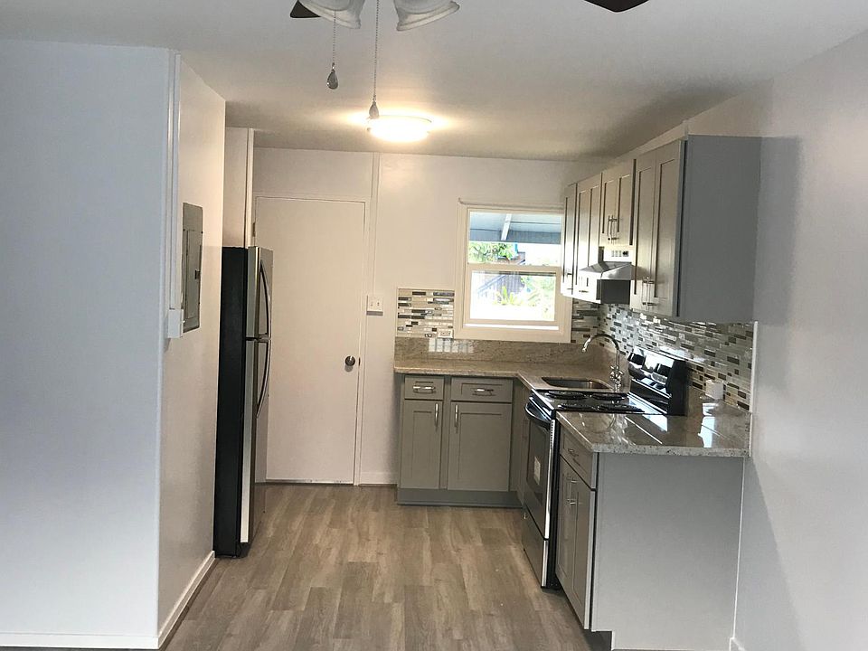 Available now! Newly renovated 1 bedroom 1 bath duplex with 1 parking located close to Neil S. Blaisdell Park. Includes new vinyl plank flooring, kitchen cabinets with granite countertop. New stainless steel refrigerator and stove. Ceiling fans in each room. Conveniently located near freeway, Pearl Ridge Mall, busline and markets. Rent is $1475/month, security deposit $1475, minimum 1 year lease. Tenant to bring in own washer. Clothesline provided. No pets, no smoking, no Section 8. Credit report required. Water/sewer included. Tenant pays for electricity and internet.