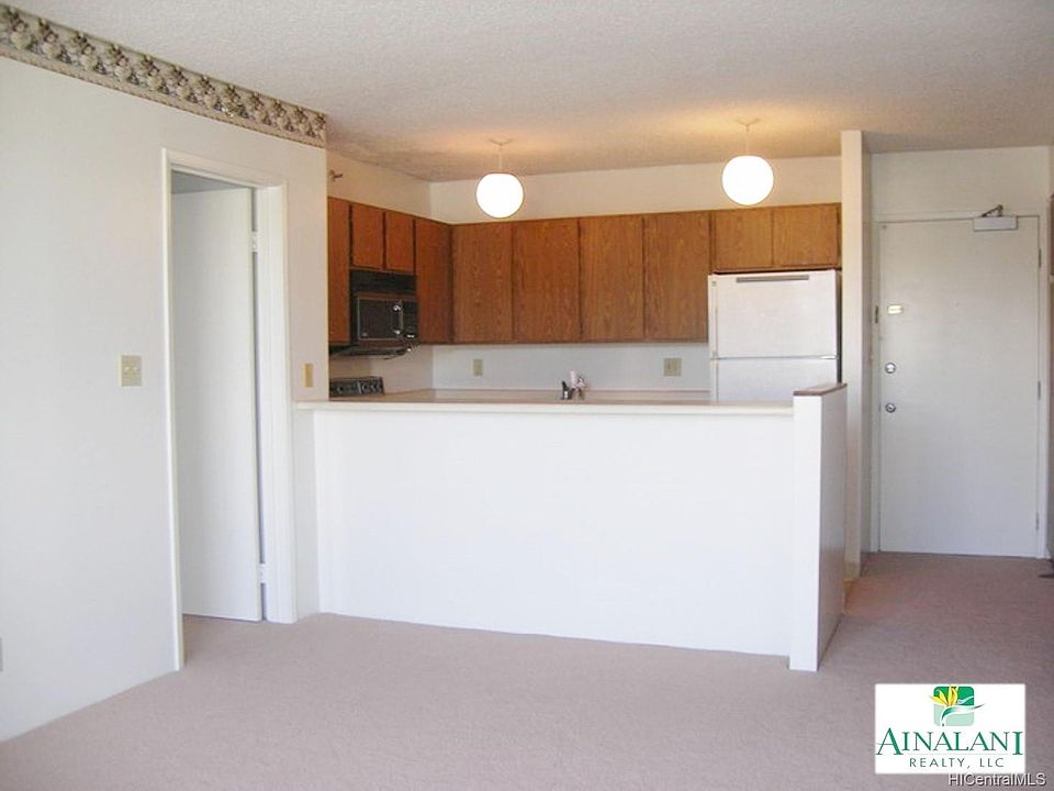 Available now, partly furnished 1-bedroom, 1-bath condo unit on cool side of building with mountain views! Major appliances include stacked washer/dryer, range/oven, microwave oven, refrigerator, garbage disposal and window a/c. Amenities include pool, spa, His & Her sauna, tennis courts, exercise room, pavilion with kitchen and storage locker for unit. Secure building w/on-site Resident Mgr and 24/7 Security and closed circuit video cameras, guest parking. Conveniently located to Pearlridge Shopping Center,lots of restaurants to dine, major banks and an easy drive to any of the military bases. No smoking, no pets. $1,550 rent includes water, hot water, sewer, 1-parking and storage locker. Security deposit and renters insurance required. Call Ainalani Realty for appt.