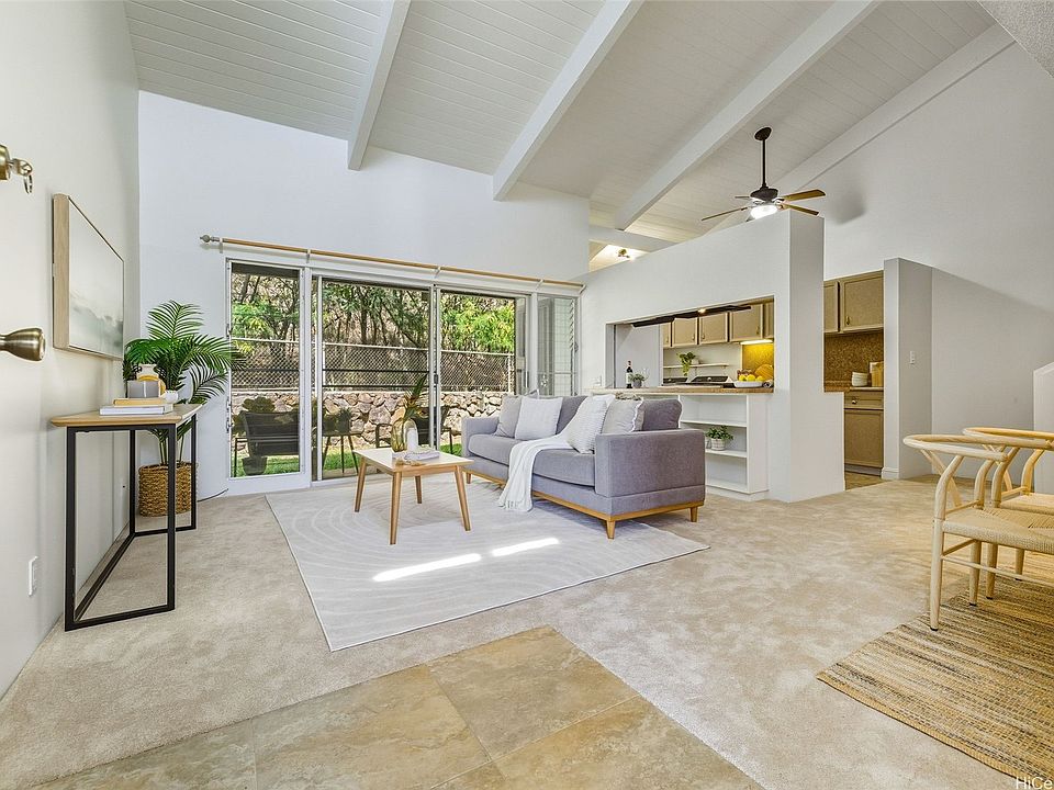 Best location — first building on Kilinoe Street! This spacious corner 3-bedroom, 2-bath townhome features vaulter ceiling. The ground floor includes a bedroom and full bath, while the second floor offers one bath and two bedrooms, one with a loft—perfect for an office, reading nook, or play area. Enjoy a small covered lanai for relaxing or outdoor dining. October 2025 upgrades include floor-to-ceiling paint, new carpet, and fully operational jalousie windows and cranks throughout. Conveniently located near shops and restaurants. Being sold in “As Is” condition. A rare find in this prime location — move-in ready and waiting for you!