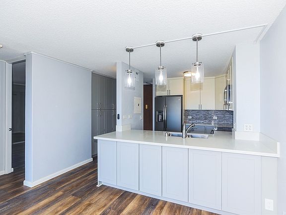 VA ASSUMABLE LOAN WITH ONLY A $5K GAP & LOW $3K/MONTH LOAN PAYMENT. This is the one to see! Beautifully remodeled 2 bedrooms with 1 bathroom and 2 parking stalls. In 2019 this unit was completely gutted to the walls and renovated with beautiful custom doors, new quartz countertops, cabinets, appliances, shower stall and more… Kitchen was re-configured to increase storage space and add additional counter space. The “K” stack is known for its wonderful ocean and harbor views. If you’re looking for a full turnkey unit ready to move into, your search is over.