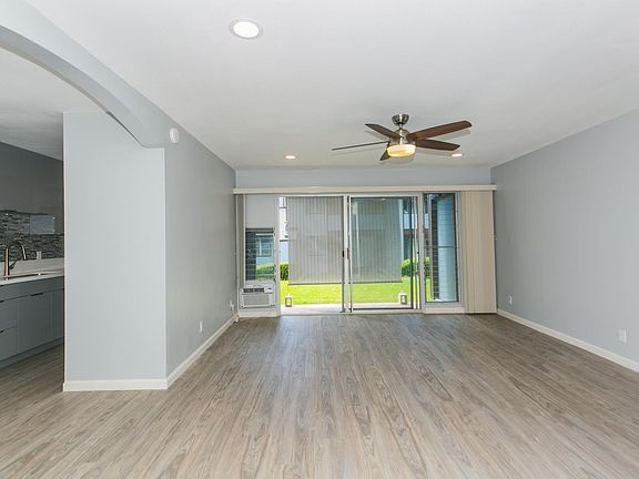 Newly renovated, ground floor, 2 bedroom, 1 1/2 bath with 1 parking stall. Improvements include, newly painted interior, new luxury vinyl plank flooring throughout the unit, new blinds, ceiling fans with light fixture in all rooms. New Acrylic kitchen cabinets. Mirrored closet doors in bedrooms. Full bath has new tile surround with new plumbing fixtures and vanity. New SAMSUNG appliances which include a; slide-in gas range with self-cleaning oven, 36 inch 27.4 cubic foot large capacity side by side refrigerator with In-Door ice maker, large capacity washer and dryer and LG window air conditioning units in bedroom and living room. Outside patio has a storage closet and awning. Water, sewer and gas included in the rent. Tenant pays electric, cable and internet.