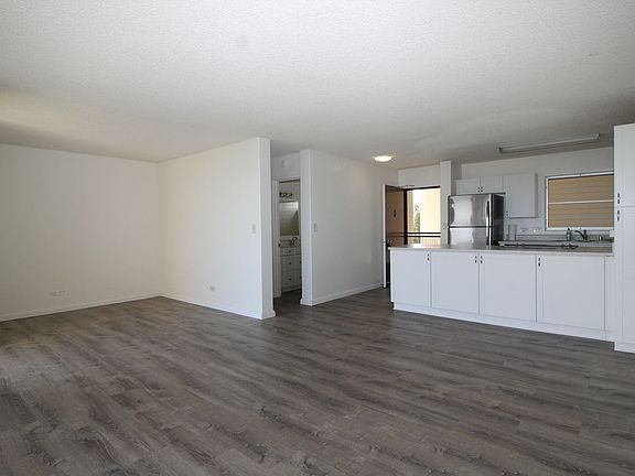 Top Floor Corner unit with sweeping view of Pearl Harbor to Diamond Head! Beautifully remodeled 2 bedroom 2 bath. Largest of the 2 bedroom floorplans at the Colonnade on the Greens! High end laminate flooring! Primary bedroom has 2 closets, one walk-in and a double closet near the entry of the room. Stainless appliances, open floorplan. Full size washer and dryer. Large lanai to enjoy the view. Two full sized covered side by side parking stalls included in the rent. Reduce rent $100.00 if you only want one stall. The Colonnade is a gated community with a 24/7 manned security guard. Amenities include heated swimming pool, spa, exercise rooms, saunas, tennis court, pickle ball court, recreation room, basketball area, putting green and more! Must see to appreciate. Cable over 300 channels, High Speed Internet ,hot water, sewer and trash included in the rent. No pets, no smoking.