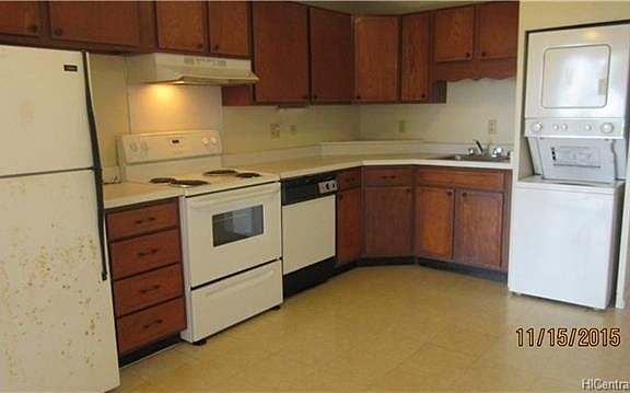 Close to Camp Smith, Hickam, Pearl Harbor and Pearlridge Shopping Center. Located in Pearl Ridge at the lower end of Iho Place away from the congestion below the Ridge. Beautiful views of Pearl Harbor and Pearl Golf Course. Split level 2 bedroom, 1 bath with 1 assigned parking stall. Additional on-street parking available in front of the unit. Lanai and small enclosed yard adjacent to the kitchen. Storage closet on outside lanai and under the interior stairwell. Carpeting in living room and bedrooms. Appliances include refrigerator, dishwasher, disposal, range hood, range/oven and stack washer/dryer. No Smoking or Pets allowed. Monthly rent - $1,625.00 includes water/sewer. Tenant provides yard service and pays for electricity, telephone, and cable. Application fee: $20.00 per adult.