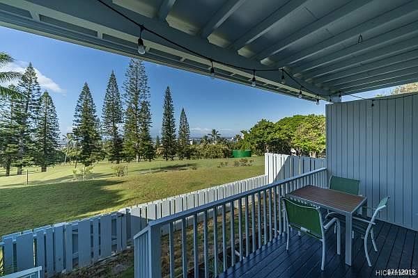 Sit back and relax on the patio of this golf course frontage unit and enjoy peaceful and expansive views of majestic pine trees, open fairways and Pearl Harbor. The first floor features an open floor plan where cool breezes flow, natural lighting provides warmth, and new carpet just installed. The just-renovated kitchen offers a walk-in pantry, stainless steel appliances, and a back door that overlooks your fenced-in yard. Two reserved, side-by-side parking stalls are just a few steps away, and set back from the street.