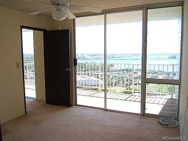 Clean 2 bedroom, 2 bath with 2 tandem covered parking spots, brand new carpets just installed. Enjoy spectacular unobstructed views of Pearl Harbor from the large 244 sq ft lanai. No pets please. Other than the new carpets unit is in orginal but very good condition. Storage available, stacked W/D, water/sewer included. Tenant pays electricity.