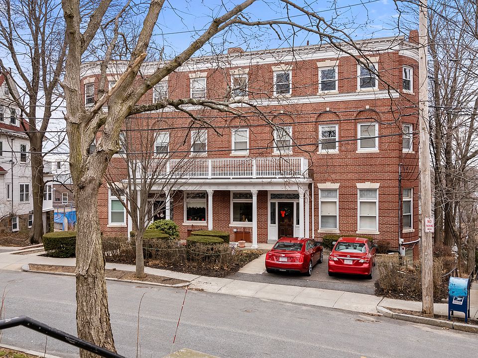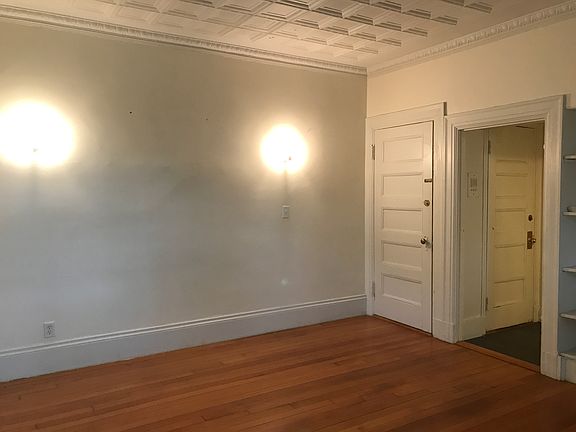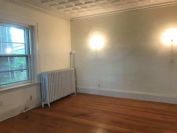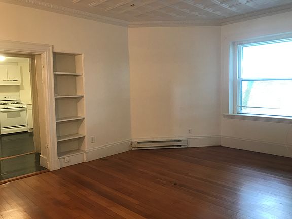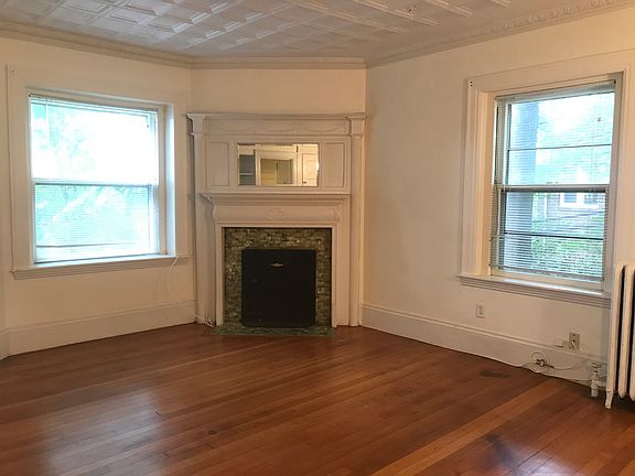 AVAILABLE NOW OR APRIL1ST - This seldomly available studio with a separate sleeping alcove suitable for a full size bed is located on one of Brookline's most serene streets with a park across from the building and convenient access to the C and D line trains, markets, shops and wonderful restaurants. The unit has a gorgeous main room with decorative fireplace, large picture window, and tin ceiling. There is an eat-in kitchen with generous cabinet space, and a small sleeping alcove with two closets (please note a queen bed will not fit), and a private rear balcony. Laundry is on site, and one on-premises parking space is available for $125/month. The building is in an intimate setting with three other rental apartments that share the main entry lobby, and a long-time owner lives next door who beautifully maintains the property. All appointments are scheduled by phone. When replying include your phone number, when you are looking to move, and the listing agent will call to arrange a viewing. NO SMOKING and NO PETS are firm. First month's rent, a one month security deposit, and one month rental fee are required. Please ask agent about lease length option. Thank you! Rent includes water, heat, and hot water. On site parking available for $125/month. First month's rent, a one month security deposit, and one month rental fee are required. No pets and no smoking please. Other residents cross the balcony to exit the building.