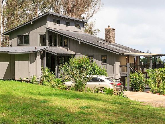 Located near the top of Olinda, this contemporary designed property is all about privacy. This lot has a serene atmosphere surrounded by Haleakala Ranch, hiking trails and parks. The 4 bedroom, 2 1/2 bath has a midcentury open floor plan with high ceilings, fireplaces, scraped bamboo floors, live edge wood bars and granite countertops. The large covered lanais and multiple decks are perfect for entertaining and watching the waves at Jaws. A lower level can be expanded. There is a music/art studio, double covered carport, and large workshop. Come see why 98 Alaluana is the perfect property to rejuvenate and unplug from the world.