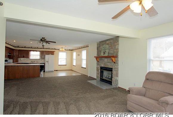 Nice size home on a gentle lot located in a beautiful cove at the 42 mile marker. Home has been recently remodeled including new doors, partial carpet, windows, hvac, water heater, septic and upgraded dock. Open floorplan with plenty of room for full time living or to entertain all of those guests who want to visit the lake. Plenty of decking and a large patio to enjoy those great lake views. Just a short gentle walk to your private, covered, 3 well dock with slide, on Lake of the Ozarks. Great parking including an attached two car garage. Blacktop roads lead to the door of this very nice home only 15 minutes from Greenview. Newer outbuilding is included with the home and home features a wood burning fireplace.