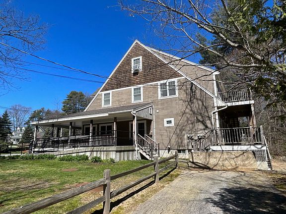 Unique opportunity! Multi-use commercial/residential building in the heart of Kensington. (1) residential 3 bedroom, 1.5 baths, 2200 sq ft. apartment on the 2nd level, completely remodeled in 2015 with separate utilities. (3) commercial units on the first floor, (1) former pizza/sub shop with separate electric, some plumbing and pizza equipment still in place. (2) former convenience store with vaulted ceilings would make a great flower shop. (3) formerly Country Brook Cafe' with 64 seats, still setup will 2 walk-in cooler, exhaust hood, refrigeration units, bench's, counter bar, dishes, glasses almost all you will need to reopen with town and State approvals/licenses. The section on the right was built in 1993 and then renovated in 2015,2017,2019, All new cedar siding, windows, roof, flooring, 2 new heating systems, central air for restaurant, parking lot lights, covered farmers porch, electrical updates, bathrooms, and continually was professional decorated, barn doors, over head lighting, custom bar. The left section has new architectural roof shingles and basement cleaned out, unbelievable potential, built in the mid 60's with vaulted ceilings constructed of 2x6 planking, definitely worth the time to bring back to it's original state. The parking lot is paved and the surroundings nicely landscaped, a small manmade pond in the backyard that Mill Brook runs through. Fantastic location South of Philips Exeter Academy, an North of Amesbury, Mass.