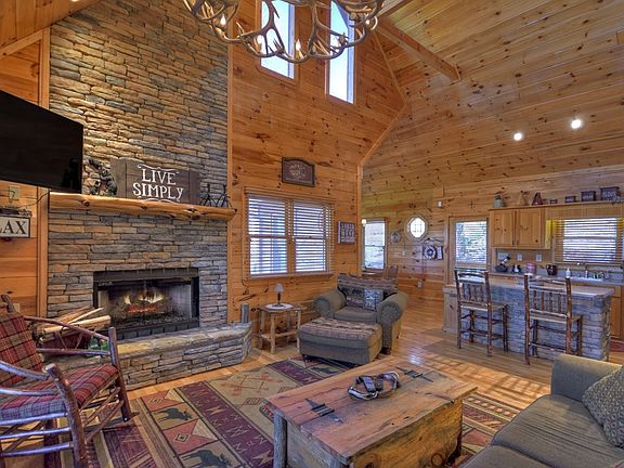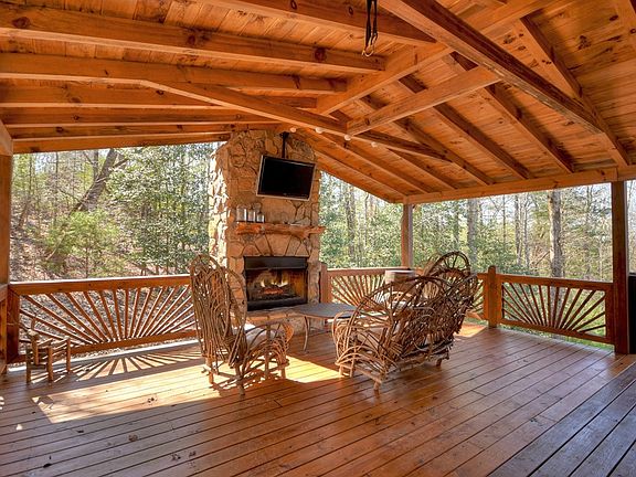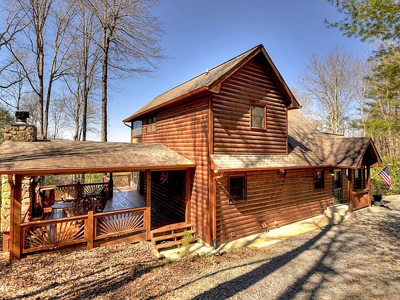 4/3 Rustic Cabin with long-range, wide mountain views. Perfect turnkey cabin for full-time living, large family getaway, or investment property. Three screened porches to take in the fabulous view from every level. Large outdoor covered porch with wood-burning fireplace. Spacious great room with wood fireplace, adjoining large kitchen, breakfast bar, and dining area. Two bedrooms, one bath on main level. Large master on upper level with large bathroom with separate shower and Roman tub AND private screened porch. Terrace level includes gathering and game room, bedroom and bath, screened porch, and laundry closet. Horseshoe driveway for off-street parking. Aska Adventure Area is in every direction. And still less than 12 miles to downtown Blue Ridge.