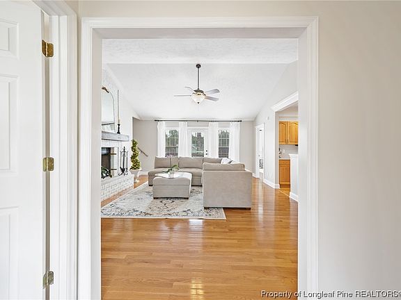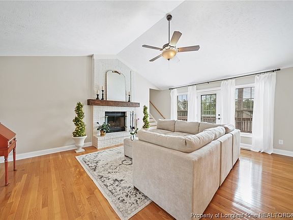 This 4 bedroom, 3 bathroom home has an ideal layout, located in a quiet neighborhood and is just a short drive to Ft. Bragg. It has been well-maintained and features a spacious fenced in backyard with deck, perfect for entertaining. Most recent updates include fresh paint throughout home. In 2021 a few updated light fixtures were installed along with stainless steel appliances. Previous owners replaced the carpet in 2021 along with the roof and HVAC in 2020. The living room has a gorgeous fireplace, vaulted ceilings with large windows that let in plenty of natural light. Primary bedroom has a walk in closet and en-suite. Two guests room are at the back of the home with privacy. Bonus room is located upstairs with a private en suite and closet