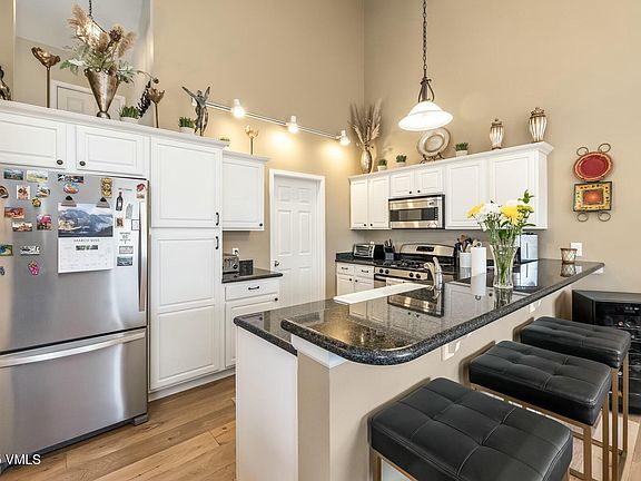 Rarely available to the market! Private end-unit townhome in middle Homestead that lives more like a duplex with oversized 2-car garage. This spacious residence is flooded with natural light and offers lovely northern and western views with incredible outdoor living space (4 decks!). The main level floor plan features vaulted ceilings, a gas fireplace, new LVP flooring, new light fixtures, large covered entertaining deck, remodeled powder bath and laundry room with pantry. Option to add a loft bonus space above the kitchen. The kitchen offers slab granite countertops, newly painted cabinets and stainless steel appliances with gas range. Both bedrooms are located on the lower level and feature en-suite baths, new carpeting and sliding doors to individual decks. The primary bathroom has been completely renovated with a new double vanity, luxurious shower with glass door and heated flooring. The two-car garage will not disappoint with deep storage unlike anything you have ever seen! Ample parking includes the oversized 2-car garage, 2 spaces outside the garage door AND a dedicated guest parking space. Directly adjacent to the trail leading to Riverwalk shopping and just across the street from a trailhead to the extensive Homestead trail system. Excellent storage throughout the residence. Only four townhomes in the self managed HOA making ownership easy. No upcoming special assessments as the association recently painted the exterior and added a new asphalt roof fall 2024. The new owner will enjoy having a USPS mailbox just down the street making package and mail delivery as easy as it gets! Located just steps from the Homestead Court Club with indoor/outdoor tennis, indoor pool, multiple Peloton® bikes and fully equipped fitness facility. An opportunity not to be missed!