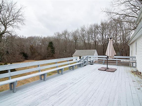 Expansive 3 bed, 3 bath cape situated on .72 acres with a large outbuilding. The first floor has a bedroom, full bath, dining room and living room complete with brick fireplace. Large deck off kitchen. The second floor has a full dormer which allows for 2 large bedrooms and a full bath. Hardwoods throughout first and second floor. The lower level walkout has potential which includes a rec room with a woodstove insert, bathroom with shower stall, storage area, workshop as well as laundry area. Generator hookup. Oversized outbuilding with electricity. Perfect for car enthusiasts, hobbyists, equipment or a studio. Convenient access to Route 78, downtown Westerly, Interstate 95, Groton and Providence.