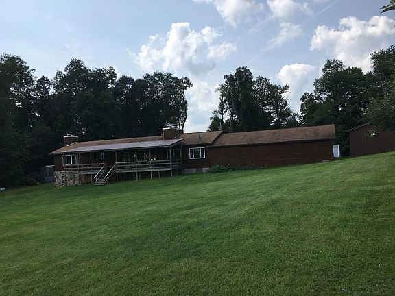 Cedar siding with rock. Wood paneling and drywall inside. Hardwood floors. Two fireplaces, gas furnace, wood furnace. Well water septic tank. Basement walls finished with sassafras three ponds stocked with fish. Good hunting three car garage.