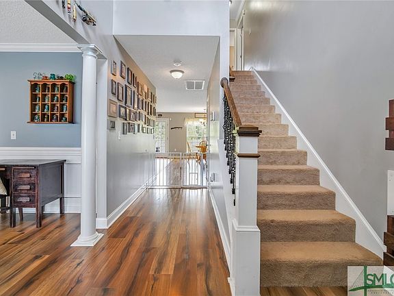 Watch the sunset while you fish in your back yard? Yes, please! This beautiful 5 bedroom, 2.5 bathroom home on .43 acres is all you need! Get the neighborhood amenities of a playground and pool with a private back yard and pond that was personally stocked with bass, sunfish, & catfish by the home owner! The kitchen offers stainless steel appliances, an oversized island, and a walk-in pantry for extra storage. All 5 bedrooms and laundry room are located upstairs. The primary bedroom has an extra seating area that can be used as an office, work out space, or library. The backyard boasts a patio, fire pit, & garden. Homeowner added the lean to, garden beds, privacy fence and farming fence (maintain that water view!) which all stay. An extra water line was also added to the backyard for gardening. The home has new paint and a Vivint Smart Home Security System. Conveniently located to Ft. Stewart, HAAF, Richmond Hill, and Savannah. Closing needed after July 1st.