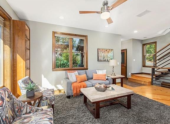 The owner of JAG Construction is selling his personal custom home, complete with a 7KW solar electric system and located in popular walkable West Asheville. Tons of features that you don't normally find, including steel and reclaimed wood stairs, locally made cabinets, repurposed 19th century Philadelphia interior doors, huge windows, timber frame front porch & more. Enjoy the master suite with balcony, mature landscaping with organic gardens and 3 levels of decks. See brochure for details