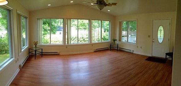 MOVE RIGHT IN and enjoy 1-level living in an established neighborhood close to all Northampton has to offer. This natural light-filled ranch style home has a bow-window in the living room that looks out on a quiet, tree-lined street. The eat-in kitchen with a new laminate floor opens to a gorgeous 15 x 18 foot family room with vaulted ceiling, 3 walls of windows, complete with a door that leads to a deck that is ready for the summer bar-b-que season. There is a lovely backyard and garden shed. 3 bedrooms, with ample closets and ceiling fans, 1 renovated bath. Fresh interior paint. Mostly-finished lower level - with laundry room, space for another bath, additional living space or bonus room and plenty of storage - can be accessed through an attached garage. Spacious and sunny home sweet home.