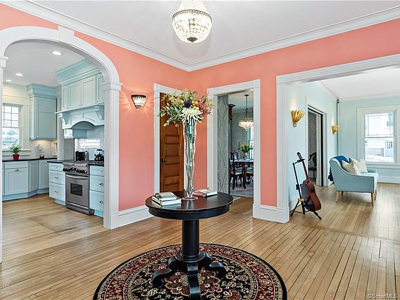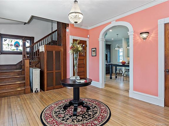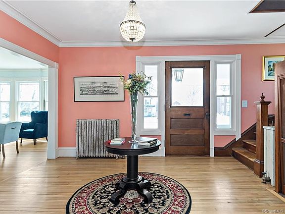 Sited on a pretty corner lot in the Historic Groton Bank section of the city is this marvelous Victorian Era home built in 1895 for Charles E White, banker, with a tremendous attention to so many attractive details. Upon crossing the front porch, where there's a glimpse of The Thames, you enter the receiving room of the home. From here you instantly feel the warmth and are welcomed by the precious natural light, doorways that invite you to walk through and rooms that flow perfectly from one beautiful space to the next. There are original deep plaster moldings that crown fabulously high ceilings, richly designed woodwork, solid 5 panel doors and a brand new cook's kitchen; all professionally designed and expertly built to the most exacting of standards. With it's new roof, Certainteed siding, replacement windows, 'auto-on' generator and a two car detached garage with water, electric and bonus area for tools storage or potting shed. Call to tour this home, stay for a while, you may have just found your new home!