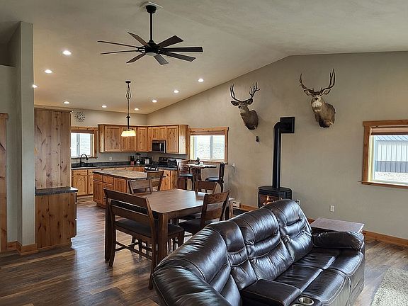 40 acres of great horse property boardered by public land on 2 sides.2022 House. 2 bed/2 bath, laundry room, office. 40×40 attached shop/garage, 24×24 separate garage/tack room, 24×24 hay barn. Pipe corrals, crossed fenced, live water 6 months a year. Shop and separate garage/tack are insulated, heated, and concrete floor. The house, shop and tack room are 24 g metal sided with hidden fastener standing and Snap Batten. Elk roam the property and surrounding areas in the winter. Willing to sell furnished and willing to sell with 90% shop tools and machines.