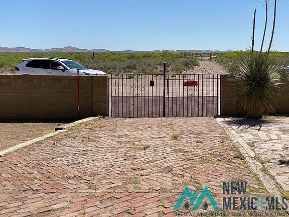 Here is your "end-of-the-trail" oasis in beautiful southwest New Mexico! This large ranch-style 3br/2ba 50's-era adobe home is located at the end of your mile-long driveway on 5.7 acres adjoining public lands. Spacious ranch kitchen, large family & dining room area with fireplace and lots of light from large windows throughout. Two domestic wells. Expansive views of the countryside. Gated grounds are enclosed by a decorative brick wall and covered front and back by mature shade trees to keep you cool in the summertime. And there is a large screened-in garden area in the back yard to keep you supplied with healthy eating choices. The well-built home and two-car detached garage just outside the side gate are roofed with durable T-lock shingles. Bedrooms and cedar-lined closets are spacious and bright. Both bathrooms are fully tiled in authentic art-deco motifs. This home also features security bars on all windows and doors, so no worries when you're out exploring the desert! Come see!