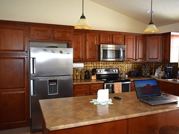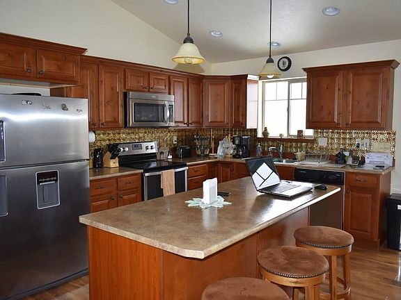 Best views on the Block! Well maintained 3 bedroom, 2 bathroom house built in 2012. The home features open concept living room, dining room and kitchen with vaulted ceilings. Stainless steel appliances in kitchen, main floor laundry and three car garage. Large master bedroom with walk in closet and attached bathroom. Full unfinished basement with plenty of possibilities. Underground sprinkling system and vinyl privacy fence with views of the East Ridge.
