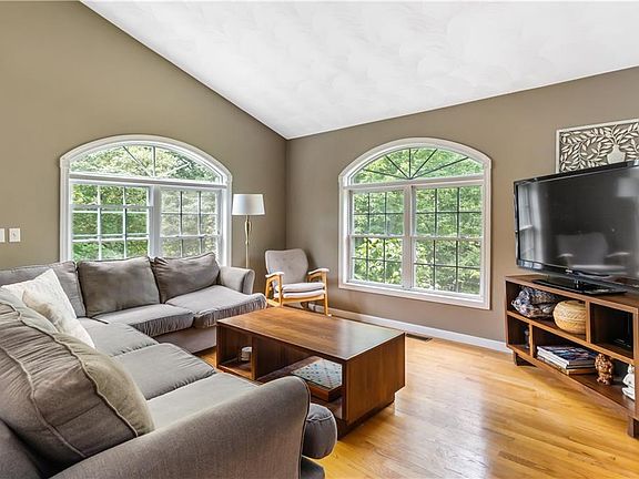 Privacy galore on a full acre of combined lots. This split level has an open floor plan, 3 FULL baths and room for an inlaw with a private first floor entrance. New A/C condenser. Outside is Vinyl siding and Gas fireplace in Living Room. Kitchen with Cathedral ceilings and access to beautiful sizeable deck. Back Yard shed as well as firepit. Property is on Corner lot so no possibility for a new neighbor. Master bedroom with bath, Lower level has a FULL bath and front to back family room/rec room. Close to Highway and local shopping, minutes to Wickford and East Greenwich.