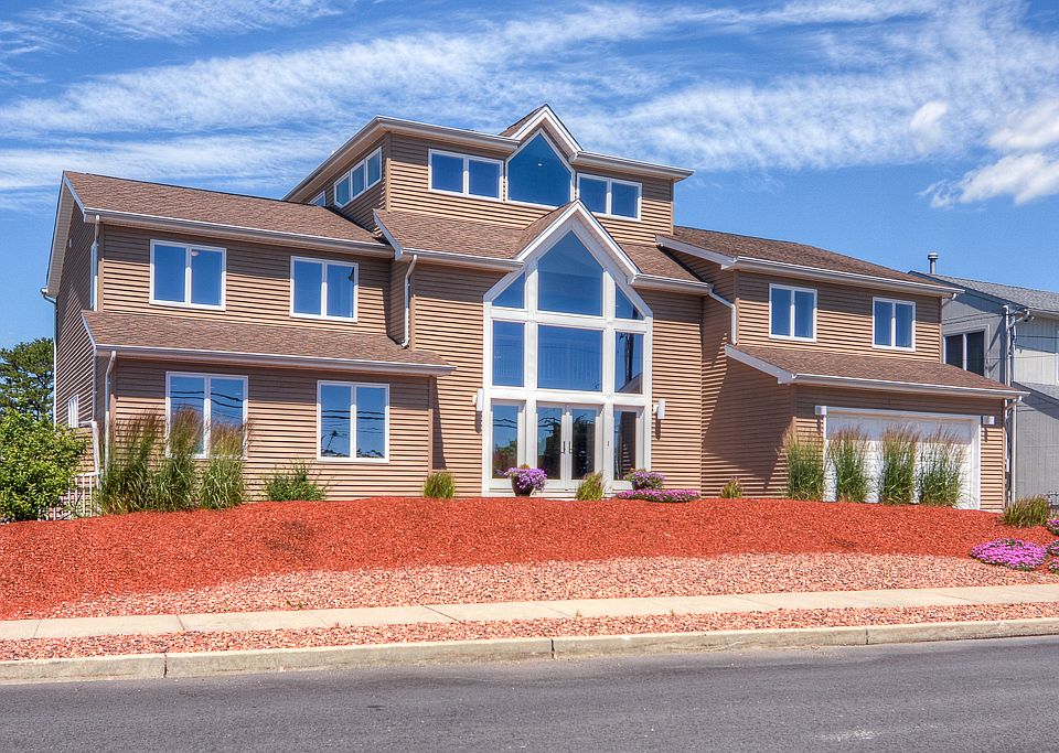 SHORE ACRES - BRICK TWP Custom designed Contemporary-style home in the Sea Meadows section provides spectacular 360 degree water views plus 3 levels that provide over 4,000 sq. ft. of living space. The home features a sunny 2-story great room that leads to the spacious kitchen w/dining area & family room/4th bedroom. A sprawling master suite offers stunning water views in addition to an en suite bathroom & 2 walk-in closets. The top floor features an open recreation area w/full wet bar & panoramic Barnegat Bay & lagoon views. The exterior includes 212 ft. of new vinyl bulkhead, a heated in-ground pool, boat lift, 2-car garage, dining area w/awning, plus a storage shed.