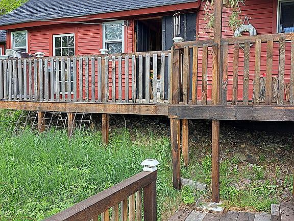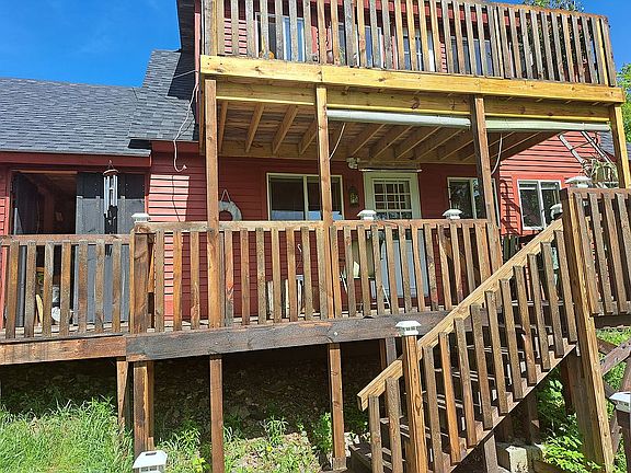 Gorgeous 1 bedroom & 1 bathroom downstairs stand up shower & 1/2 bathroom upstairs main bedroom, Master br private deck/balcony, a small insulated garage attached to home, with separate entrance & exit deck on rear, for storage, upper loft storage, no flooring, gravel ground (was intending to add concrete flooring) & extend home, added a small control room from garage its a generator & solar power, well insulated, uses propane in winter for warm. House switch for generator inside for well 220 amp, & separate generator for house electric or solar. Home is situated on 11+ acres. You will fall in loe with the tranquility of the location! Enjoy your own serenity on 2 story rear decks one off dining room and one bedroom, listening to the birds, a soothing sounds of a brook. Has a 3rd lower deck. Sit upon top of mountain looking across mtns & upper brook has beaver creek & fresh water otters, water flowing put your canoe in. Water levels change per season. BEAUTIFUL SUNSET. Deer & Bear walk across frozen winter. Great for anyone who loves adventure, wild country, would love to do of all the things the area has to offer: Rifle practice, hiking, fourwheeling, snowmobiling, hunting, snowshoeing, fishing, & canoe! !included encloded wood shed 20x10, detached garage 16x20. Plenty of room to build Lots of parking. There a seperate structural framed in camp apx 300+/- with framed in rough cut 4x6 walls, outside has rough cut pine siding, naturally weathered, has small rear deck, side porch to camp, needs new roof, only ice and water, A smaller Structurally unfinished inside, can be renovated to a camp. It is 3 rooms, open concept Kit /LR & sm bedroom, sm loft, has a wood stove, no solar or electric, has attached generator room outside attached to outhouse, no indoor plumbing. It can be hunting, seasinal rental, shed or storage. Can walk to the edge of mountain side to overview to same Stoney Creek, behing main home. (Was going to make for rental or grown Children visiting or sell off a small portion.) The main home is heated by either wall rienni propane heaters-2 keeps very warm without wood stove use. it has a Amish made burns coal or wood s Kitchen has full size refrigerator, stove fueled propane,on-demand hotwater heater, solar system for some electric, night use, electric gas dryer & washer is apt. Stackable front leading. It has a small Alaskan room & inside hall. Open the back doors on two levels two 2 level rear deck balconies & one lower deck to view beautiful scenic mountains, birds, deer, more Can use water. No large boats. Rasp &blackberrys & foraging, outside entertainment. Great investment Main Home & camp, or live year around. A gated 800 ft private driveway. Main Home is insulated R30floor, & 1/2 board, walls R19, Roofing R60 insulated. Keeps warm in winter,& cool in summer. Exposed huge beams, rough cut beauty, Slab pine counter top. Treated. Flooring tonguegrove pine. Clearcoated. Antenna local channels or install HughesNet, Starlink or Dish network. NOT currently used, Cellular works in area. Underneath main home crawl space 3-apx, very dry as home on mountain, Drilled well 183 ft deep, septic tanks 1000 gal, leach field. Natural tongue grove pine flooring, walls & open beams. (You need finsh master ceiling, & install a tub or small jacuzzi master br onsuite, It has working toilet& sink with side walking in closet.