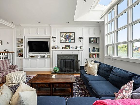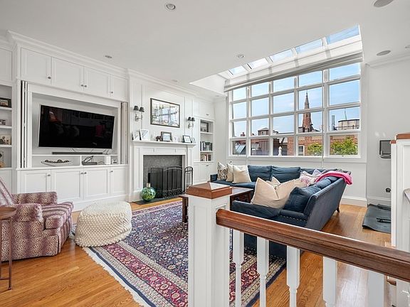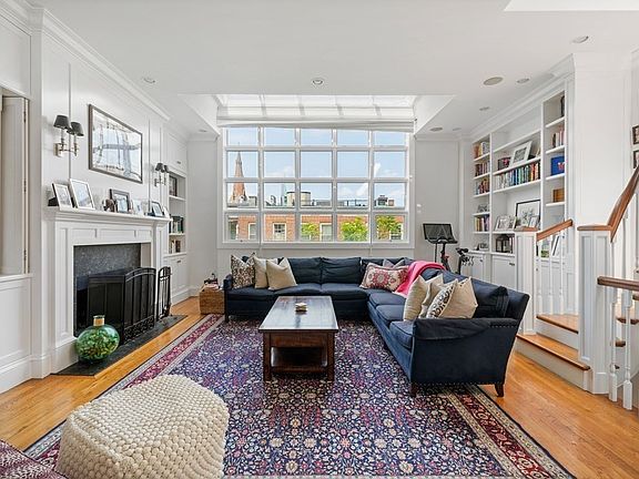 Nestled in the coveted Flat of Beacon Hill, this 2-bed, 2-bath penthouse radiates sophistication and comfort. The top floor features an open layout with a light-filled living room boasting lofty ceilings, a wall of windows that transforms into skylights, and a central fireplace flanked by elegant built-ins. The elevated dining area has French doors that lead to a serene private deck. It is open to a well-laid out chef's kitchen with a center island, wine fridge & ample cabinetry. The 3rd floor houses a luxurious master suite with a spa-like ensuite bath complete with double sinks and a custom walk-in closet. A generously sized 2nd bedroom is conveniently close to a well-positioned full bathroom with stackable laundry. Ascend to the private roof deck via a full set of stairs to enjoy expansive city views, perfect for both dining and relaxation. Central air, gleaming hardwood floors & ample storage enhance the living experience. Steps from vibrant Charles Street & the Public Gardens.