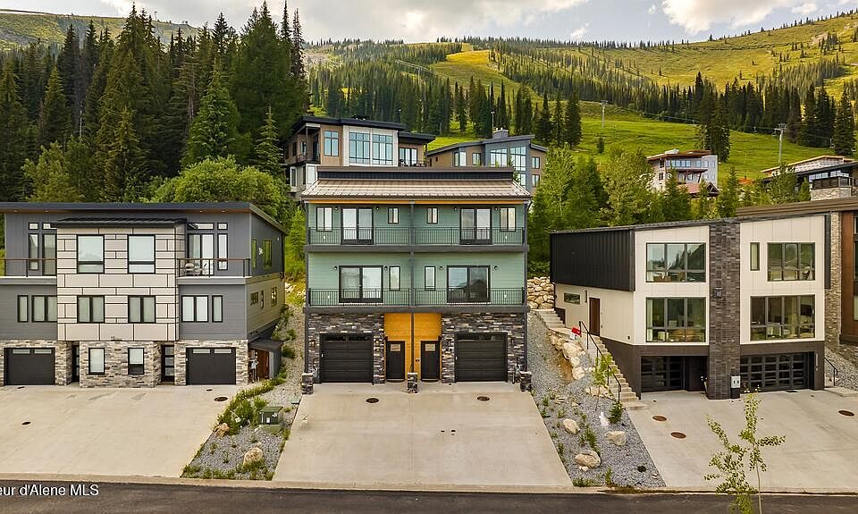 Experience year-round Mountain Living at its Best! Directly from your front door enjoy access to over 2,900 acres of skiable terrain, along with a vast amount of hiking and biking trails. The Modern Mountain design of this Ski in/Ski Out Townhome captures stunning panoramic Lake and Mountain views while providing an open floor plan. A gourmet kitchen with high end appliances and ample space that flows seamless into the dining and living room. Allowing for cooking, entertaining in the same space all while enjoying great views. This home features 2 Bedrooms, 2.5 baths currently set up to sleep 10+ and includes 2+ tandem garage. Cozy features are a gas fireplace with a view and a back patio with a hot tub. Just down the road or ski/walk trail is Schweitzer Village, enjoy restaurants & amenities with great proximity. Chutes lane is a heated road, and the driveway is heated ensuring you can come and go effortlessly all year round.