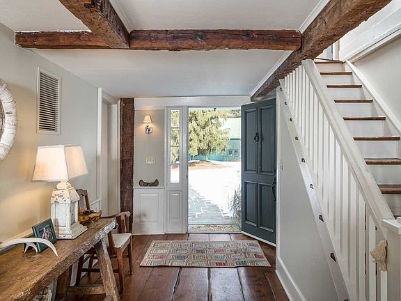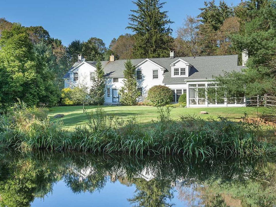 Built in 1703, Rockwood is one of the oldest houses in Dutchess County. This fully modernized home, with a large sun-drenched kitchen wing addition, retains 100% of its colonial charm while epitomizing comfort and livability. Spacious rooms, fireplaces, cozy nooks, and glorious outdoor spaces make Rockwood perfect both for large scale entertaining and intimate family dinners. Three-hundred-year-old wide-plank floorboards glow with history and warmth. The entryway is spacious enough to double as a sitting room. The billiard room off the central hall features an original fireplace and cushioned window seat. A large fireplace is at the center of the wood beamed library, which once served as the original kitchen and is now a perfect spot for late night reading. The heart of the home is a sprawling and stunning kitchen/great room. The kitchen is a chef's dream, with professional grade Viking range, deep country sink, marble countertops, and walk-in pantry. Just beyond a spacious area for a large dining table is a sitting area with fieldstone fireplace. A long bar, with ice maker and wine cooler, completes this social hub. The entire room is lined with windows and French doors open to various outdoor spaces, a screened porch with blue stone floor, a pond, a 50' long heated lap pool, and access to the wooded Wappingers Creek frontage that makes this property so magical. A guest room, full bath, walk-in coat room, laundry room, and mud room complete with a doggie bath are also on the first level. Upstairs, four more bedrooms circle a central sitting area, the gracious, skylit master suite, two bedrooms with Jack and Jill bathroom, and another en suite guest room. Original tongue-in-groove doors and dormer windows add to the history that infuses these rooms. The property includes a barn with workshop, three-car garage, and loft overlooking a bend in the creek that could be converted to living space. Five acres of walking trails to wander through, right on Wappingers Creek, make this property a fairy-tale hideaway spot within easy access of Millbrook, and the train into New York. Min 24 hr notice required for accompanied showings.