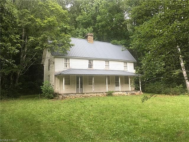 Old time farmhouse; 1925 era according to Haywood County tax records. Ownership of this home has been in this family for quite some time. This family has fond memories of past times spend in this home and on the property. This home has old-time charm and character. Live the simple life & use unmodernized or renovate & make it fit your modern standards. Priced as-is & to attract a cash buyer with a sharp pencil. Top of property adjoins the Pisgah National Forest; the lower meets Crawford Creek.