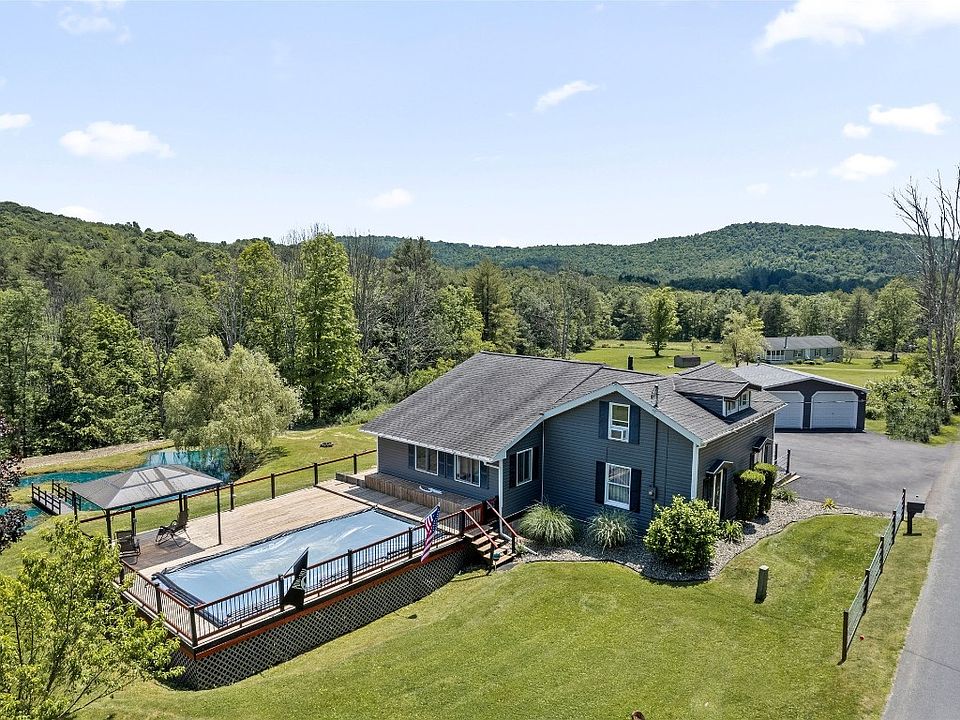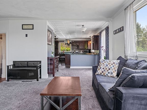 Do not miss out on this unique home with amazing views with almost 9 acres, these owners have put a lot of work you can recognize while walking the property, they have done a fantastic job! Breath taking fountain pond with colorful evening lights, a new septic system, & look at the beautiful landscaping! The spacious open kitchen with an island is perfect for cooking and entertaining with 1st floor laundry. The main floor offers two cozy bedrooms & a modern bathroom with an updated tile shower & radiant heated floors. Upstairs, you'll find a large loft bedroom with knotty pine & new carpeting throughout. Enjoy the pool & gazebo (as-is), & watch beautiful sunsets & sunrises from the gazebo, no need to go on vacation lets talk about the perfect staycation! The property also includes ample parking with a large driveway and a 2-car detached garage. This well-maintained home welcomes FHA buyers.