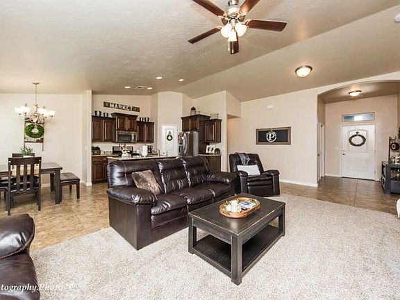 FOUR BEDROOMS! FEELS, LOOKS, and IS like new in a fast growing destination location - Sunset Ridge. Open, great rm. floor plan expanding into the kitchen & dining areas. ZERO wasted space. Stainless appliances, granite counters, & upgraded cabinets. Tile in ALL high traffic areas makes EZ cleaning and zero traffic wear. Master suite is split from other 3 bdrms too for added privacy. RV PARKING TOO