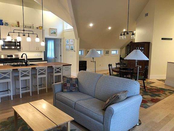 New Residence Apartment specific for those seeking to lease while searching for new home or building new home in Camden, Maine and greater Mid-Coast Maine. Benefits include no end date within reason while searching or building new home. Modern Sunny New 2 Bedroom, 2 Bath, 2,100 sq. ft. furnished private residence overlooking private lawns & gardens. A south-facing, sunny and secluded in-town setting in Camden on over 1/2 acre. Key Features: New Appliances, Cherry Top Kitchen Island, Two Walk-in Tile, Glass Showers. Vaulted Ceilings, Large Master Bedroom, Master Closet & Laundry Room. Radiant Heat, Wireless, Cable & Telephone, Maple Hardwood Flooring. Heated 2 Car Garage with Private Entrance on First floor. Private Elevator & Stairway Entrance to Second floor living. Outside Breezeway Sitting Area, Large Backyard, Gardens, Outside Fire-pit Stone Patio. Very Private Backyard Grounds with professionally maintained Lawns & Gardens. Contact Owner A. Owned and managed by the founder and owner of The New England Real Estate Company. Lease has key benefits of being open-ended and located in-town Camden, Maine for those seeking to find a high quality rental, while also either searching for, or planning on building their new home in Camden, Maine or greater Mid-Coast Maine. Length of time of lease open from a minimum period of 4-6 months to as long as 1 or 2 years or more within reason, especially if relocating to Camden, or the greater Mid-Coast area and or building a new home. A perfect in-town Camden home solution for those moving to the area and actively searching for a new home or wish to buy a home lot or land to design, plan and build one's new home. Base Lease cost includes professional snow and lawn service year-round. Utilities and Wireless Services extra per month based on usage.