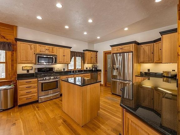 Magnificent Custom Built Colonial privately set on over 13 Acres. Work hard & play harder in this meticulously maintained 9 Room 3 Bed 3.5 Bath that hits all the marks for a well-round homestead. Warm & inviting finishes are found throughout; v-groove pine walls, hardwood floors, south-facing sunlit rooms, gas fireplace inserts, Granite Kitchen & Baths. First-floor living possibilities include master bedroom suite, laundry, vaulted living room, dining/kitchen/pantry & office. Second floor provides two bedrooms w/large closets, a full bath, & a study. 10' ceiling - Walk-out basement can be used as home gym/flex space w/tons of extra storage & possible future bathroom or Sauna stub-ups. Plenty of room in the 4-bay garage for all the toys. THE Sports bar/Game room is complete with full bar, gas fireplace, bathroom, storage & private balcony. The exterior is an entertainment paradise from the in-ground pool, concrete patio, hot tub, exterior shower, pergola, & level irrigated lawn.