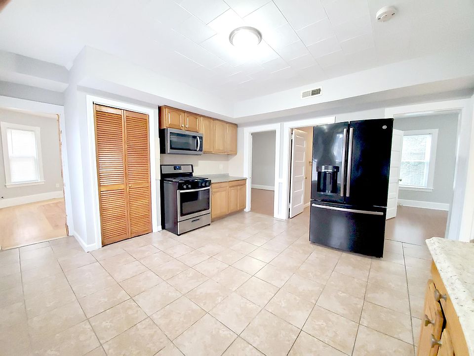 High ceilings and recently renovated makes this apartment feel like a breath of fresh air. Hardwood floors welcome you in the living room where tiled floors in the kitchen make cleaning up a breeze. Newer appliances installed to upgrade your standard of living. Natural sunlight and bright lights in this 2bed/1bath unit accompany the spacious kitchen to make it feel like home. 2 Off street parking spots come with the apartment and laundry is on premise. Easy access to the highway to cut your commute from home to work. Tenats responsible for all utilities. NO Pets. Laundry on premise. 1st Month's rent, Security deposit due at lease signing. 2 Off street parking spots included in rent.
