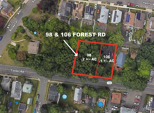 Land available for sale consists of two parcels, 1. 98 Forest Rd. .2+/- acres and 2. 106 Forest Rd .1+/- acres. with 120' +/- frontage on Forest Rd. Utilities located on roadway. Buyer responsible to perform their Due Diligence with City of West Haven Land Use Office. Property(s) being sold "As-Is"