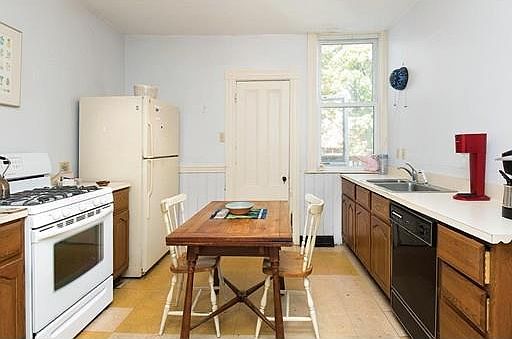 Spacious three-level Victorian era Mansard townhouse is located in an enclave of historic homes near Watertown Square. Built in 1880, the home has retained many of its original architectural details; decorative molding, hardwood floors and high ceilings. First floor offers an entrance foyer, living room, dining room with butler's pantry and a large eat-in kitchen with gas cooking and pantry. The kitchen has direct-access to a wood deck overlooking a spacious and flat backyard. The second floor offers three bedrooms, a full bathroom and conveniently located washer and dryer. The third floor is comprised of two additional rooms. The house has a fieldstone foundation with a walk-about basement. Gas heating and two car parking complete this property which is close to shops, restaurants and the bus to Harvard Square.